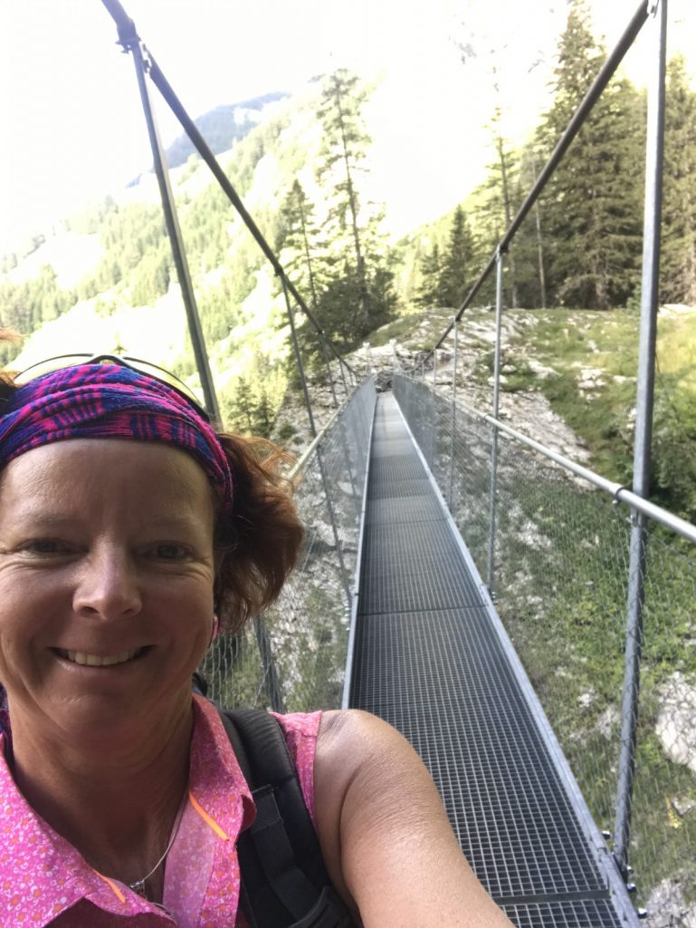 Je rejoins un peu par hasard le refuge de Bonaveau et m’offre une bière locale, pensant que le terrain va être facile maintenant. Le charmant serveur me conseille de retourner à Champéry par le Roc Coupé, environ 2 h, c’est plus pittoresque que la forêt de l’autre côté en 1H ½. J’aurai dû me méfier du mot pittoresque. La passerelle Belle Etoile inaugurée en 2017, permet de passer le torrent de la Sauflaz, connu pour ses crues dévastatrices. Puis l’alpage de Rossétan et finalement le Roc Coupé, qui s’appelle comme cela, car ce sont les hommes qui l’ont taillé pour créer le passage à l’alpage. Je n’en vois pas la bout de la descente, même si le chemin serpente dans une magnifique forêt accompagné par le torrent. A la bifurcation La Luy, au lieu de vérifier mon parcours, je continue et me retrouve au Grand Paradis. Alors là, je me dis que le détour par le Refuge de Bonaveau vaut bien les quelques kilomètres qui me restent et je fais du stop, une voiture s’arrête tout de suite et me dépose à la gare en quelques minutes et le train attend déjà en gare. Parfaitement organisé.