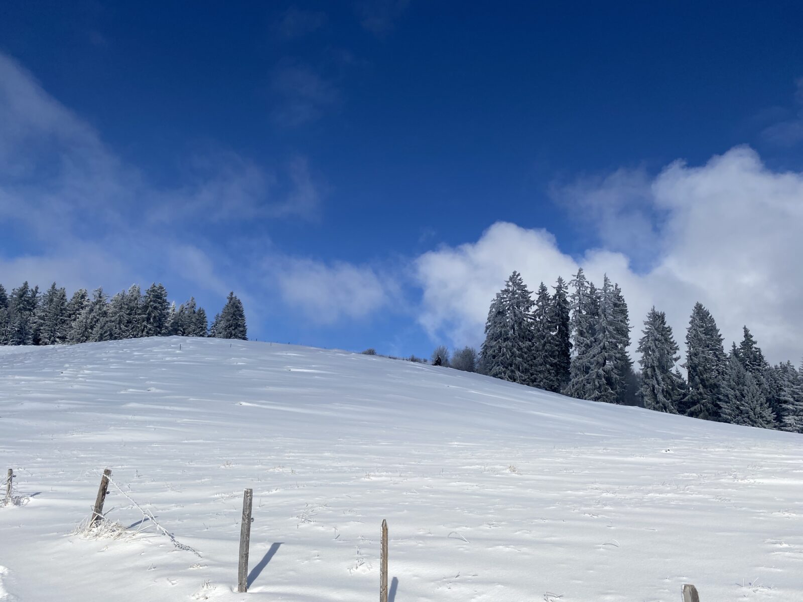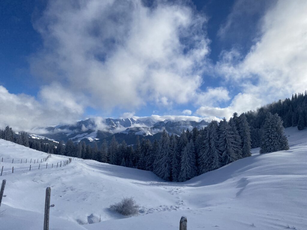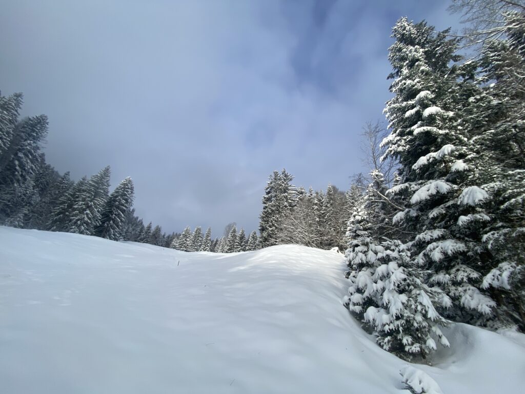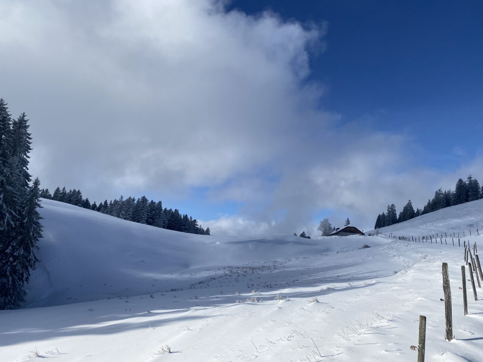 Je me parque à Cerniat et décide d’emprunter en partie un trajet que j’avais fait en janvier 2022 sans neige ou presque.