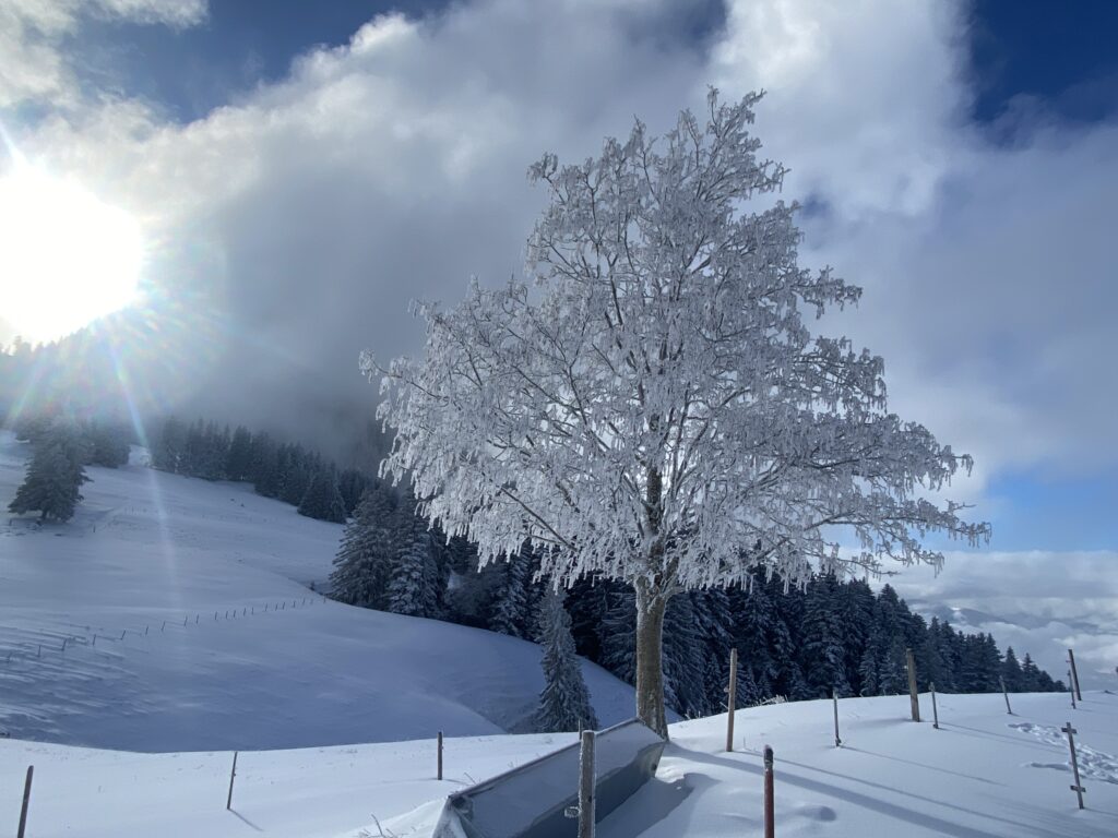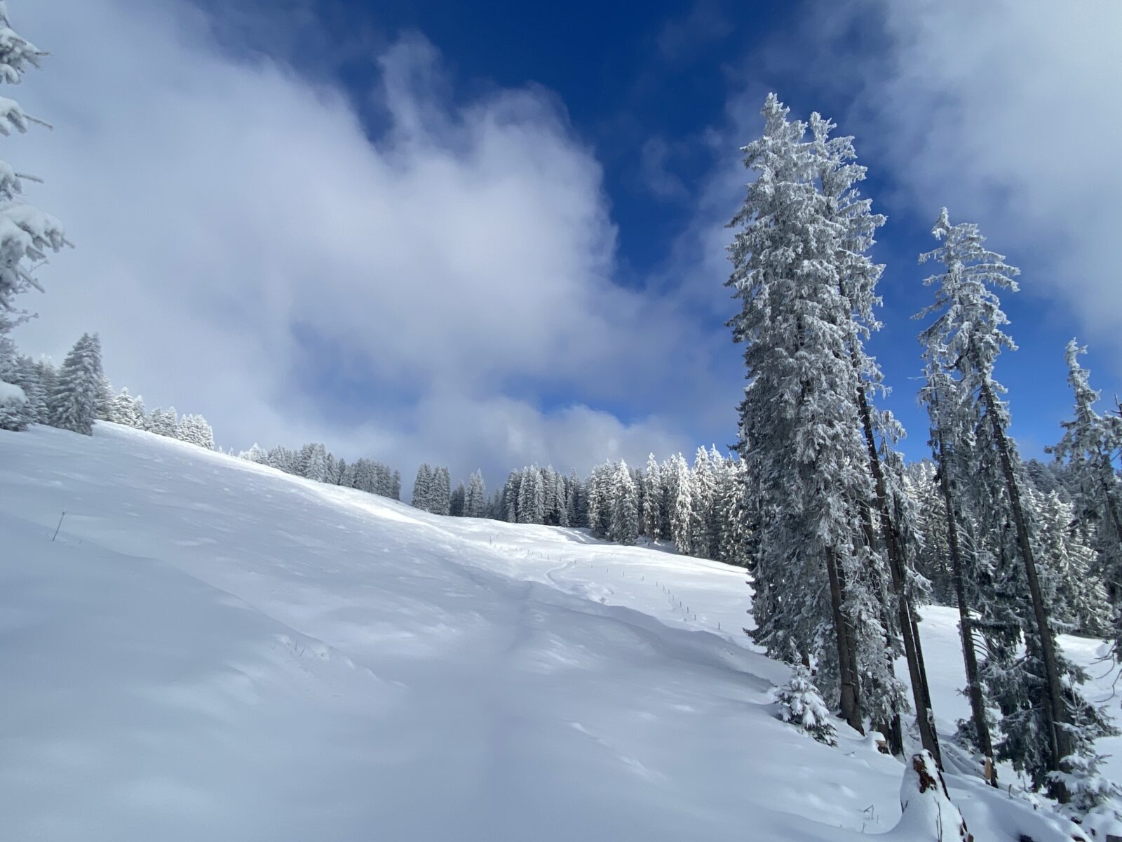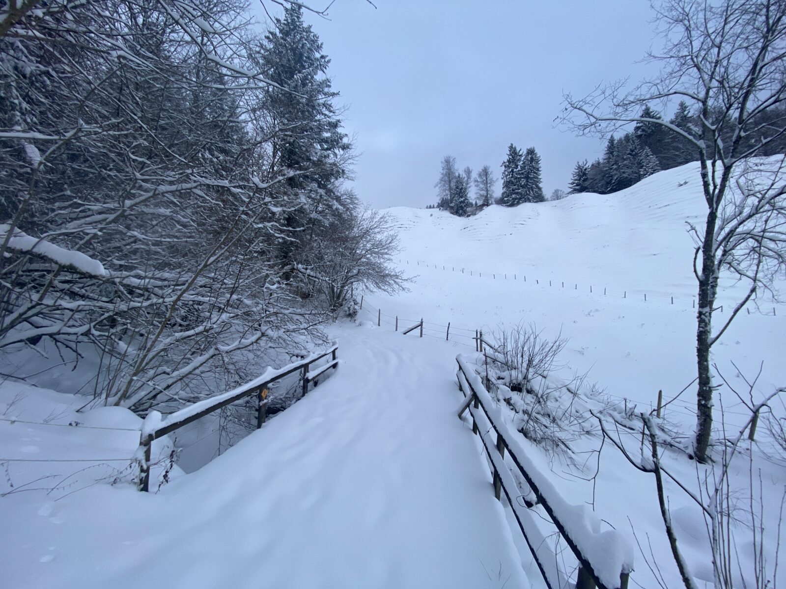 Je me parque à Cerniat et décide d’emprunter en partie un trajet que j’avais fait en janvier 2022 sans neige ou presque.