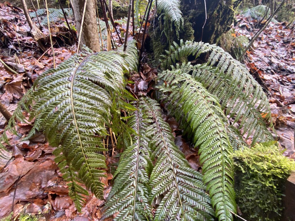 Je suis à l’ombre et il fait frais dans cette vallée étroite. Je passe de nombreux ponts en bois ou en caillebotis, des escaliers qui montent et descendent en fonction des méandres du Gottéron. Il y a des mousses et des fougères en grand nombre, signes de l’humidité permanente. Plus j’avance, plus le temps se couvre. Je retrouve le Pont de Berne et pique-nique frileusement sur un banc le long de la Sarine vers le Petit St-Jean.