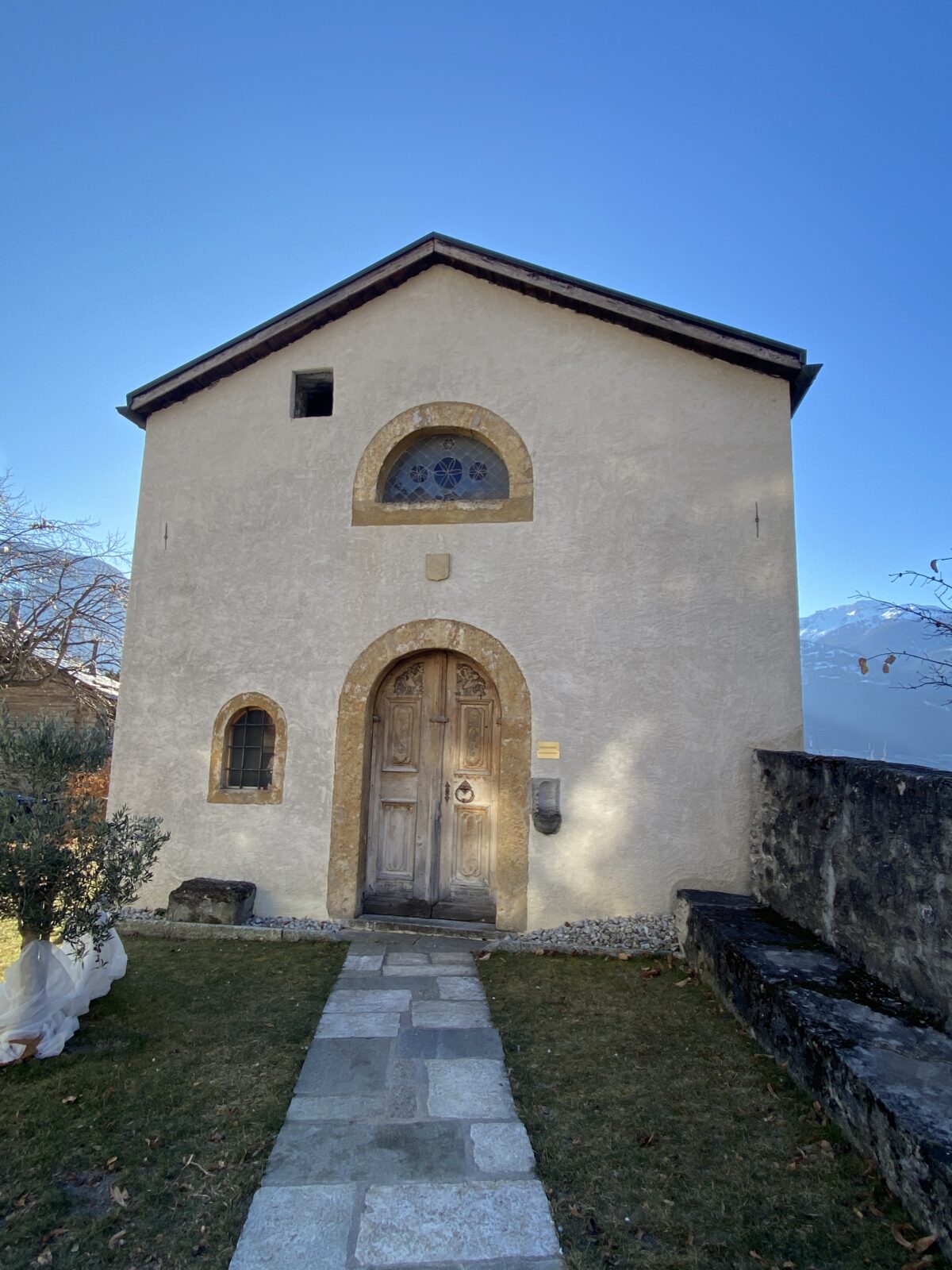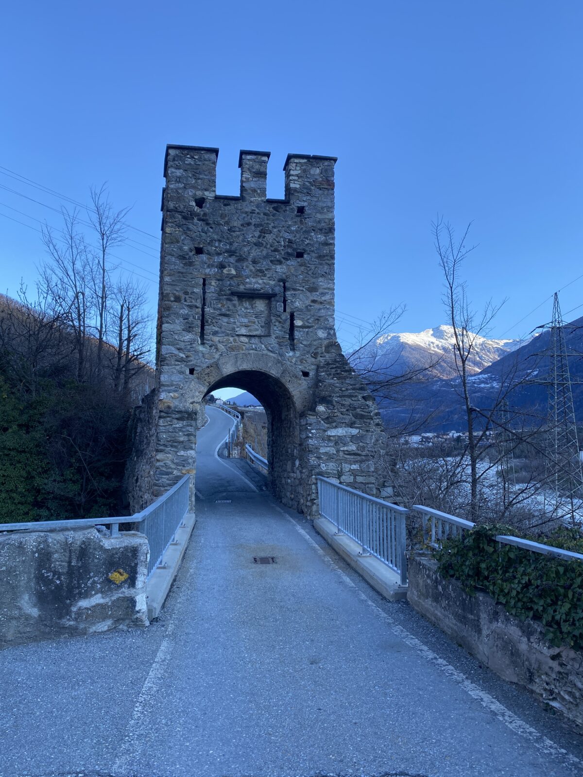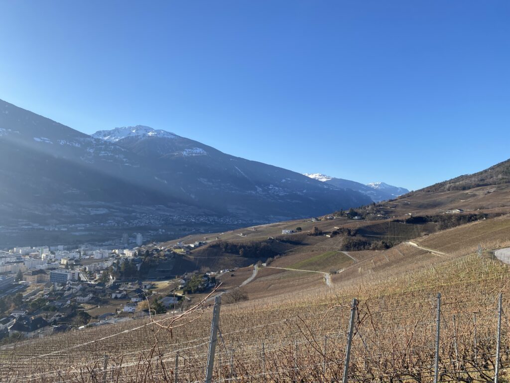 Je pars de la gare de Sierre et monte à travers la ville pour rejoindre le sentier. Il fait un temps magnifique. le ciel est sans aucun nuage. A travers les vignes, j’arrive tranquillement aux hameaux du château Anchettes et du Moulin puis à Venthône, village médiéval.