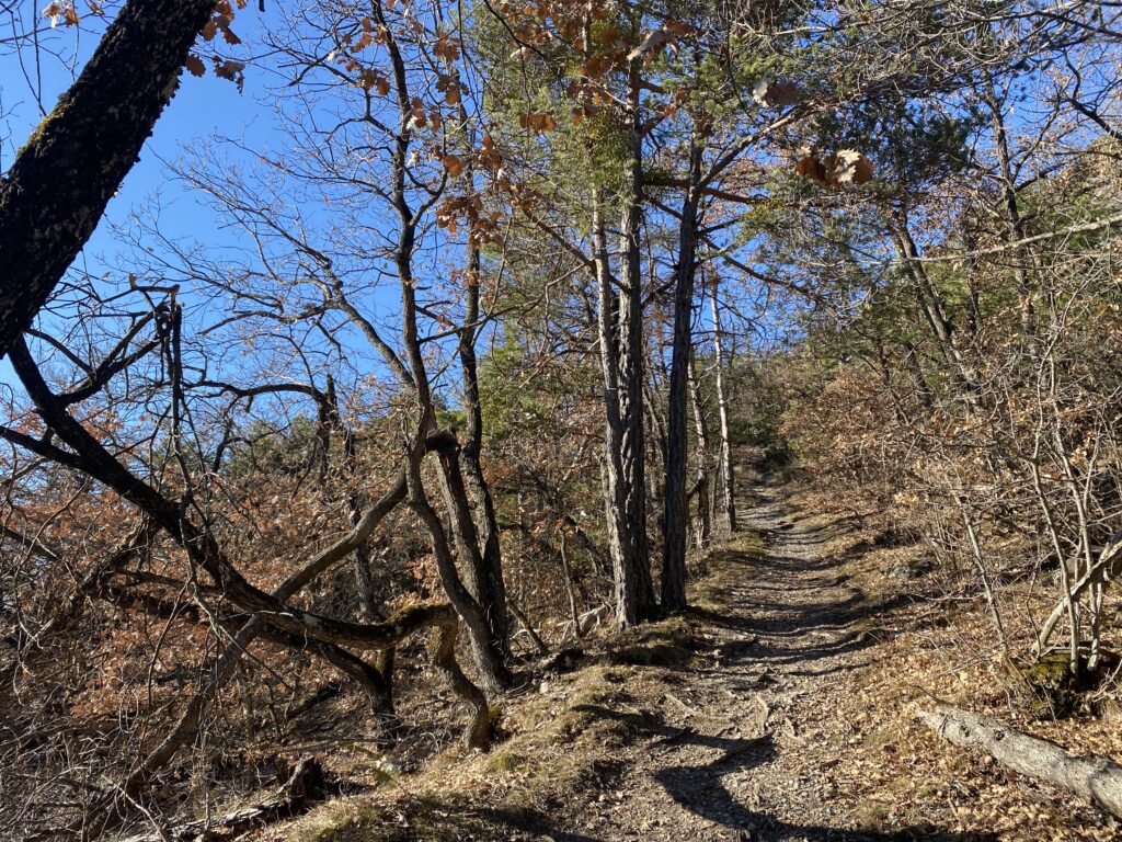 Un banc exposé et abrité m’accueille pour un pique-nique que je mange avec gourmandise. Je ne traine pas trop, car il fait néanmoins frais malgré le beau soleil.