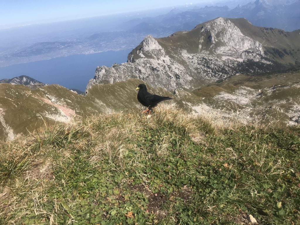 Depuis le lac Tanay, après plus de 3 heures d’efforts nous y sommes. Sefie et pique-nique au sommet en compagnie des chocards attirés par nos sandwichs. Vue imprenable sur les Dents du midi, des Alpes savoyardes et le Léman.