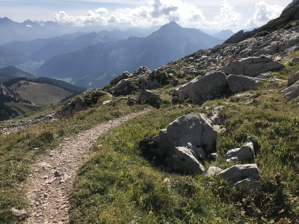 Les Cornettes de Bise posées sur la frontière Suisse France ne sont pas faciles à gravir et requiert une bonne forme physique ; parcours exigeant, raide, caillouteux, vertigineux.