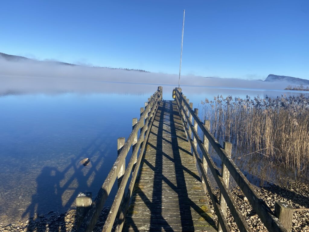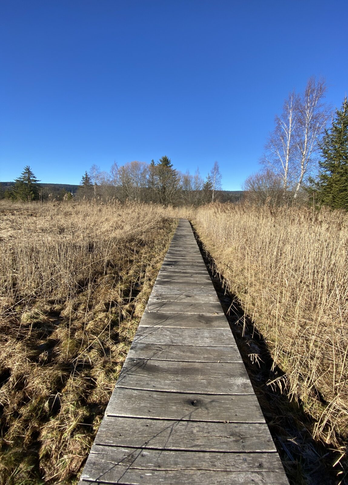 Je traverse des tourbières sur des chemins en caillebotis pour rejoindre le bout du lac côté Brassus.