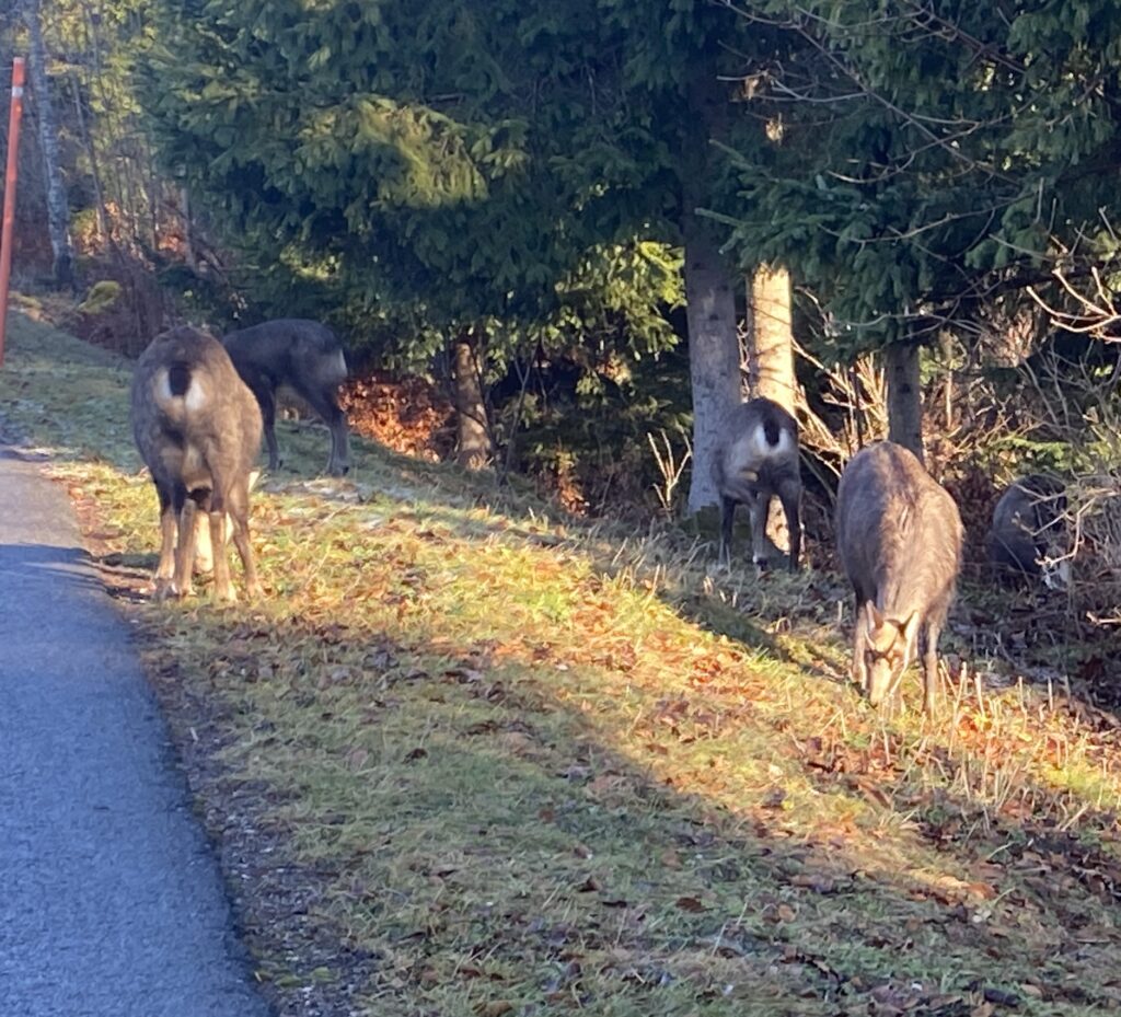 Je chemine ensuite le long de la rive du Sentier au Pont en m’arrêtant à de nombreuses reprises pour profiter de points de vue incroyables. Je gravis la seule et courte montée de la balade avec en récompense 5 chamois broutant dans le talus à quelques mètres de moi.