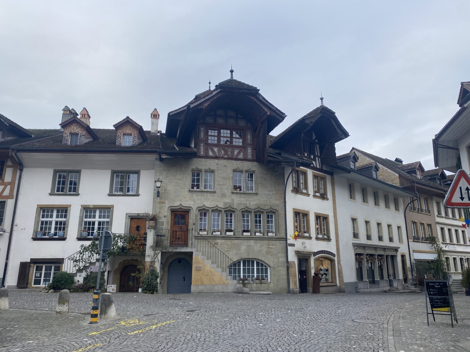 Ensuite il y a vraiment un moment désagréable, je traverse une zone industrielle le long de l’autoroute. Je retrouve le calme avec d’abord de petits immeubles puis des villas pour finir avec de magnifiques demeures en arrivant au-dessus de la gare. C’est Carnaval à Fribourg, je croise quelques familles déguisées.