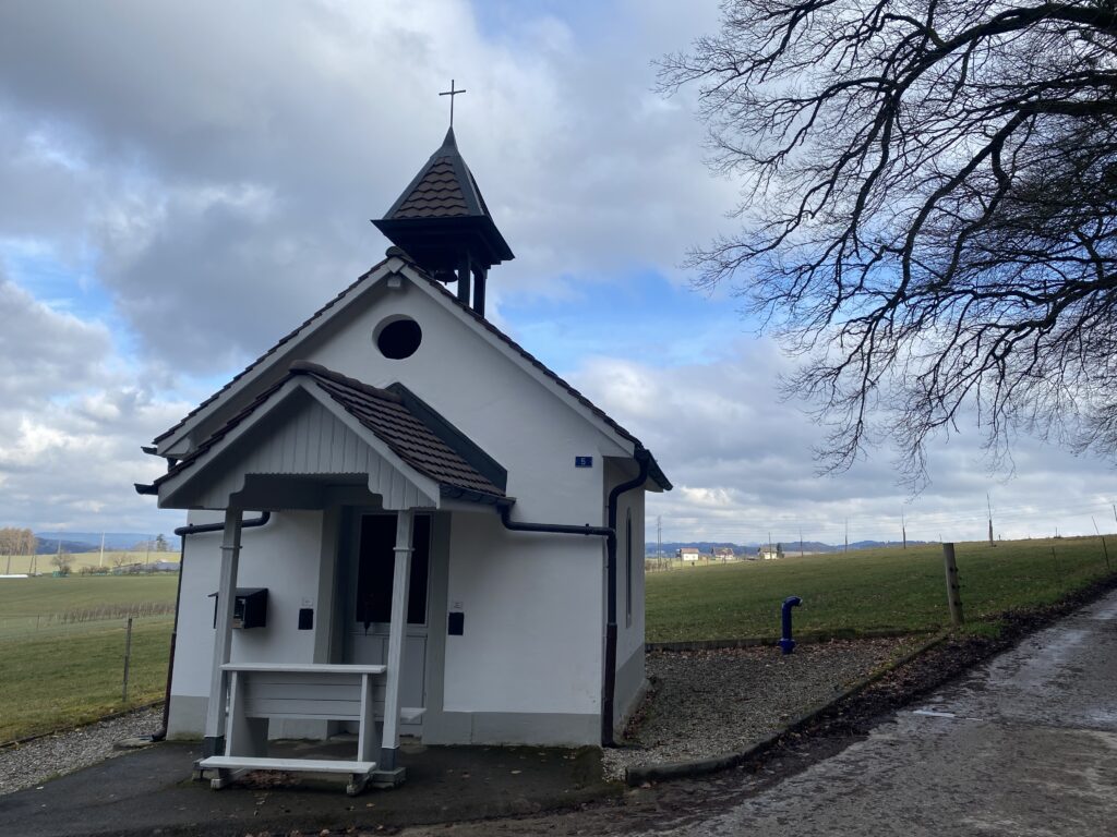 J’ai un coup de cœur pour Chandossel, un hameau paisible et avec une belle énergie. Jusque-là, c’est quasiment à plat, puis quelques montées m’emmènent en vue de Courtepin que je frôle. Je longe un ruisseau réhabilité habité par des castors, en témoigne les arbres rongés. Il y a d’ailleurs un sentier castors entre Cressier et Courtepin, avis aux familles.