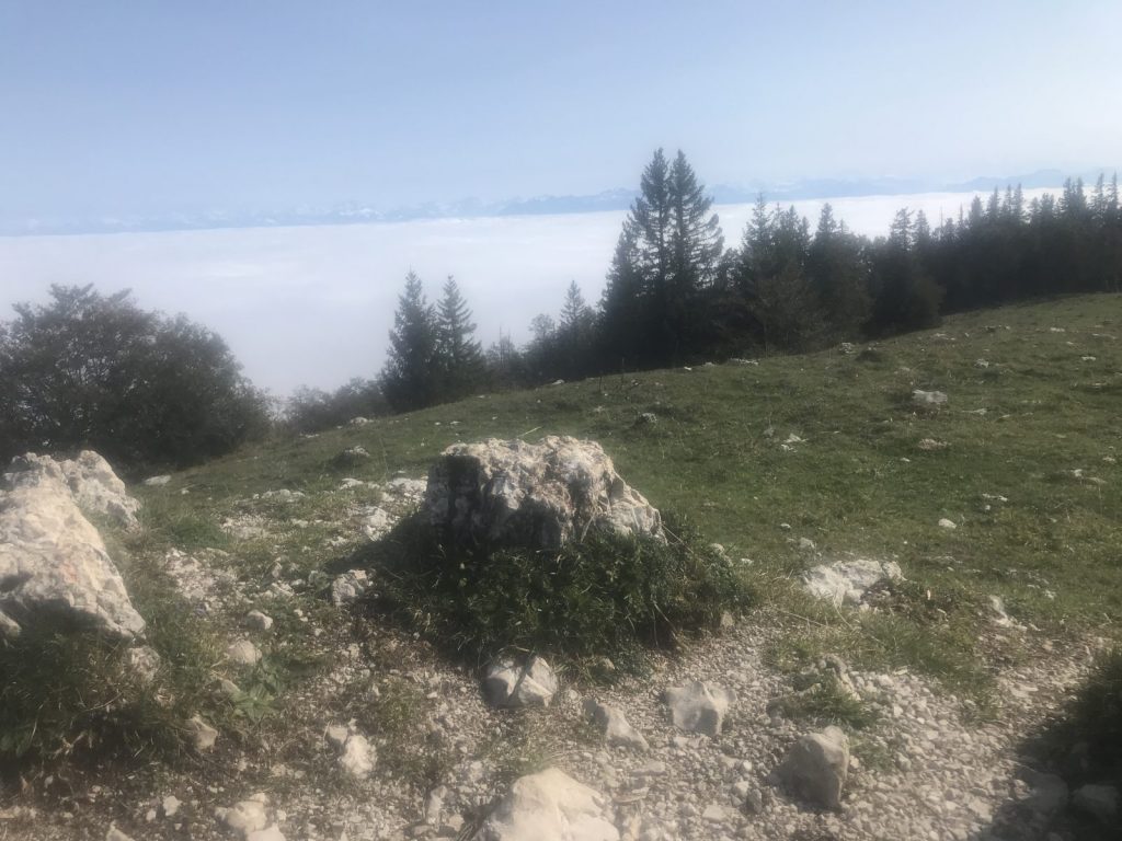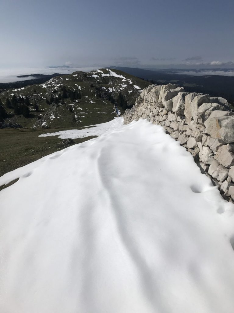 Avec la neige qui s’est rapprochée, retour dans le Jura. Départ de Montricher direction le Mont Tendre avec le soleil, rapidement pourtant le brouillard remonte et m’accompagne jusqu’à Pré Anselme. Au sommet beaucoup de randonneurs qui profitent de la seule journée de beau annoncée pour cette semaine, température agréable et pause pique-nique bienvenue.
