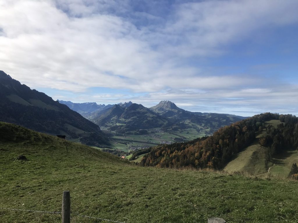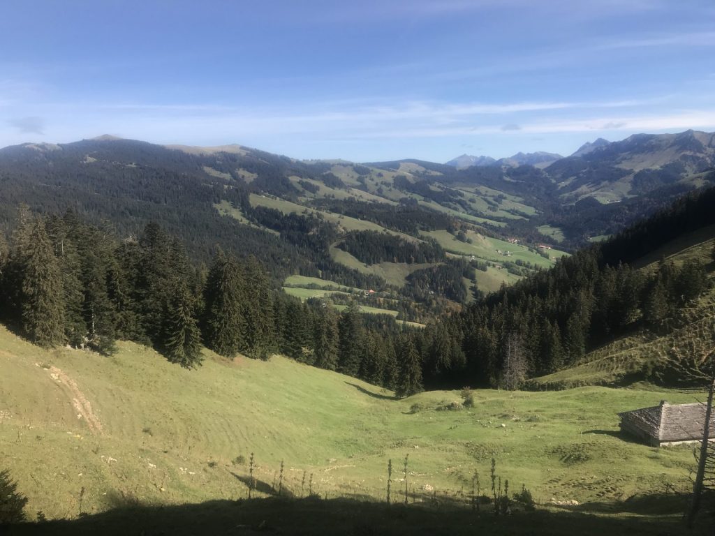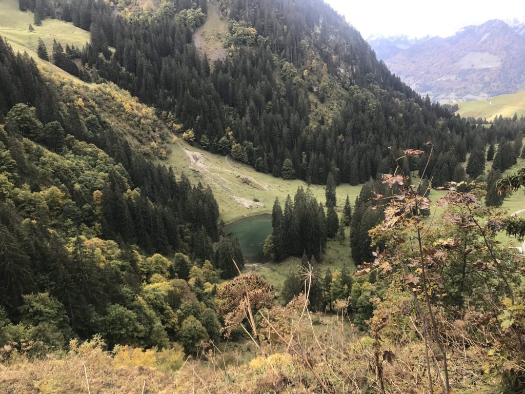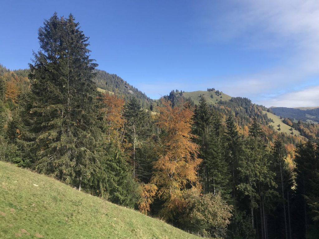 La descente à l’ombre du Vanil demande prudence et attention. Je prolonge le trajet jusqu’à la Guille qui semble avoir été rebaptisée ? et rejoint Cerniat, en partie par la route, seul bémol de cette journée, j’observe « chanceusement » deux grands rapaces qui me survolent tout le long comme pour compenser !
