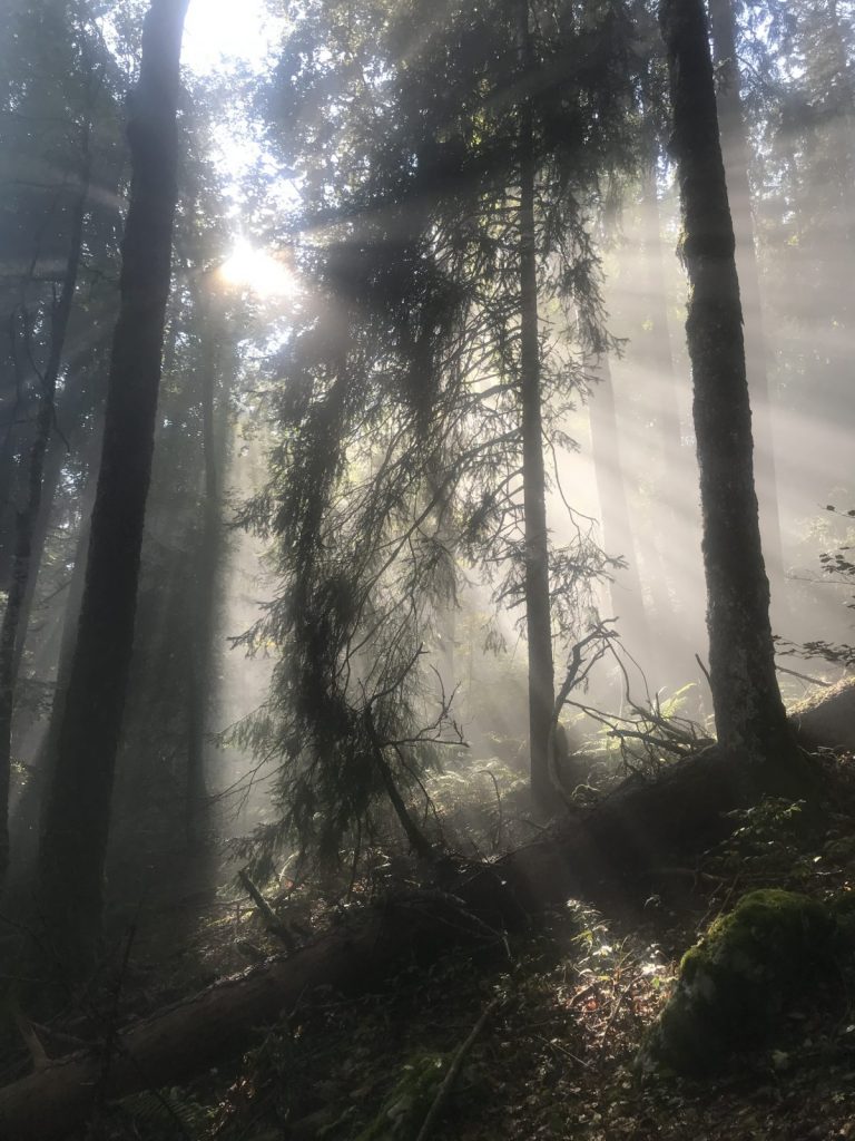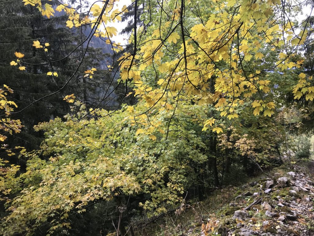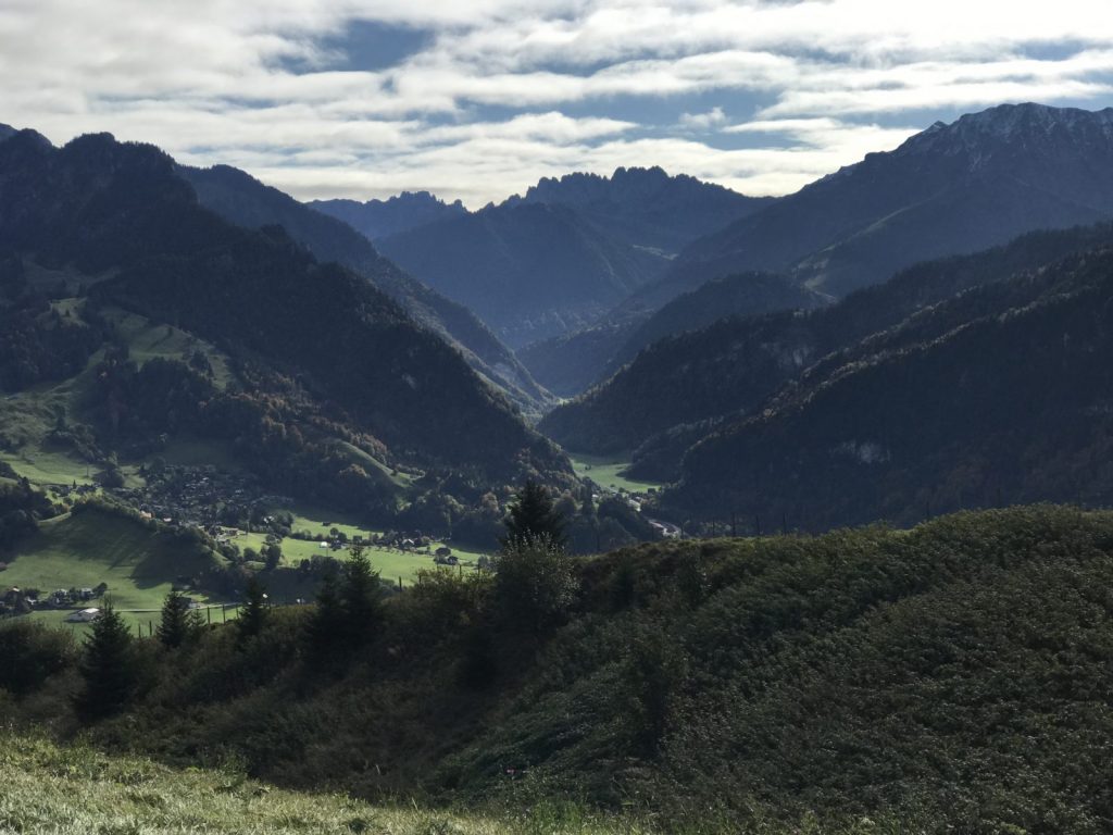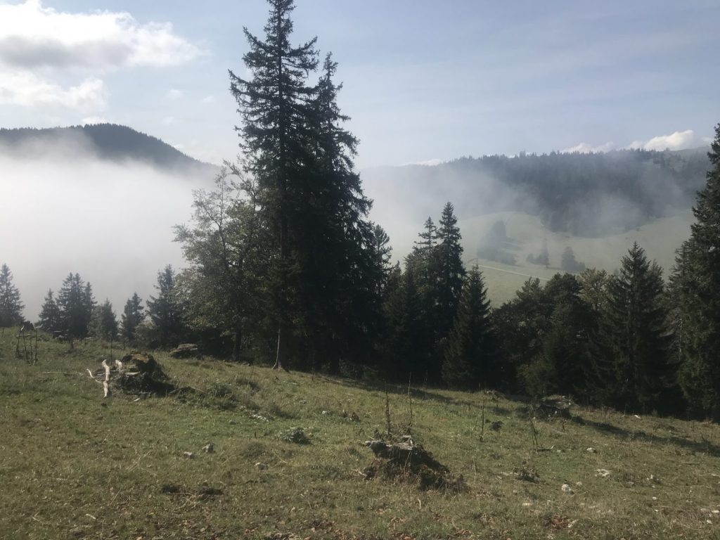 La descente à l’ombre du Vanil demande prudence et attention. Je prolonge le trajet jusqu’à la Guille qui semble avoir été rebaptisée ? et rejoint Cerniat, en partie par la route, seul bémol de cette journée, j’observe « chanceusement » deux grands rapaces qui me survolent tout le long comme pour compenser !