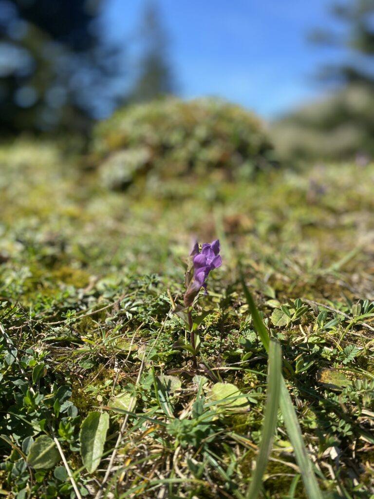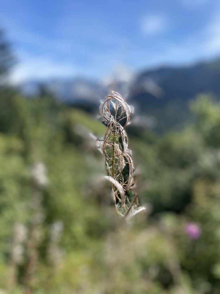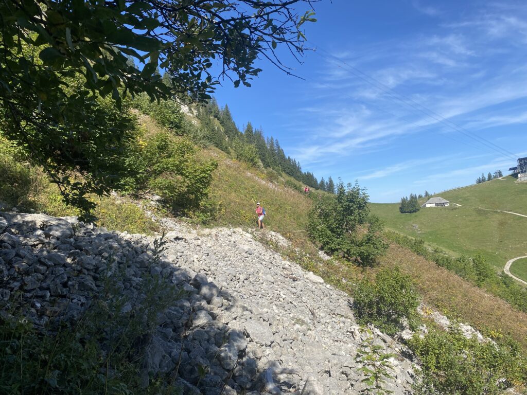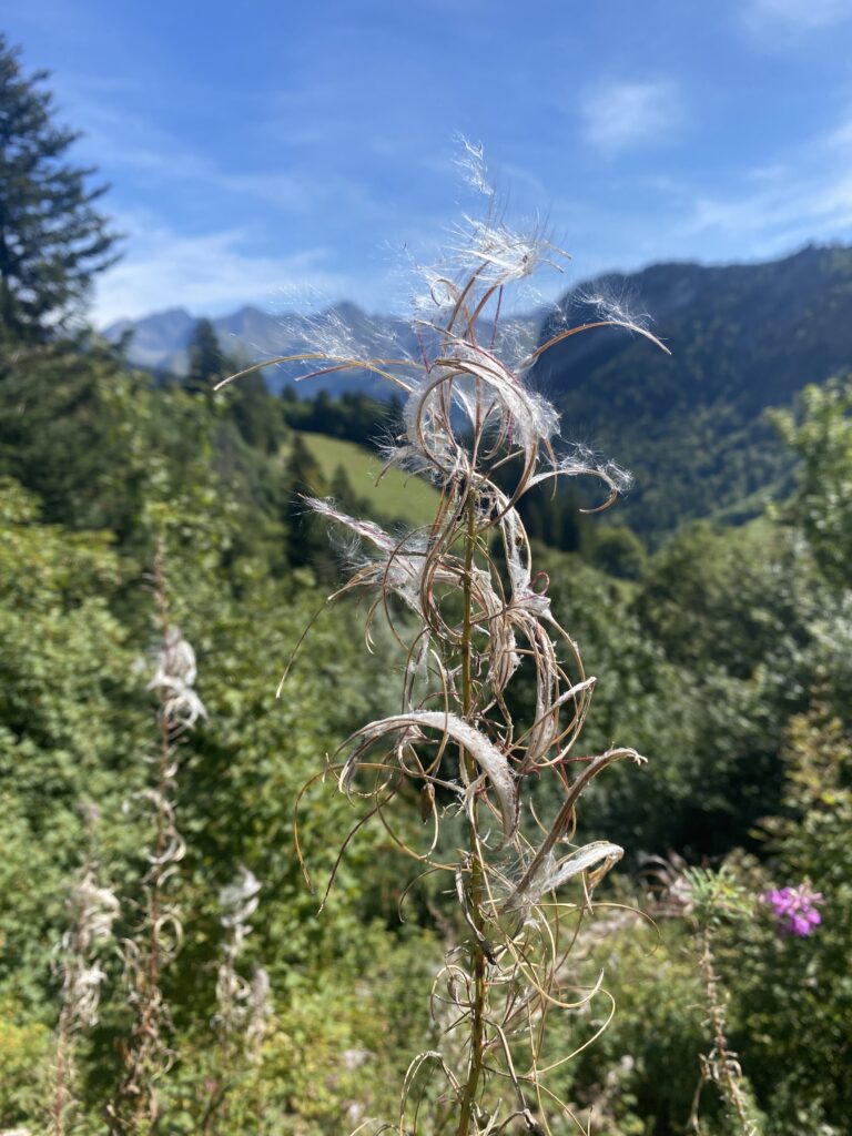 C’est par un sentier à flanc de coteau que je poursuis en direction de Gros Moléson à travers le jardin botanique qui répertorie les fleurs à l’aide de panneaux didactiques. A cette saison, il y a peu de plantes encore fleuries. Dommage.