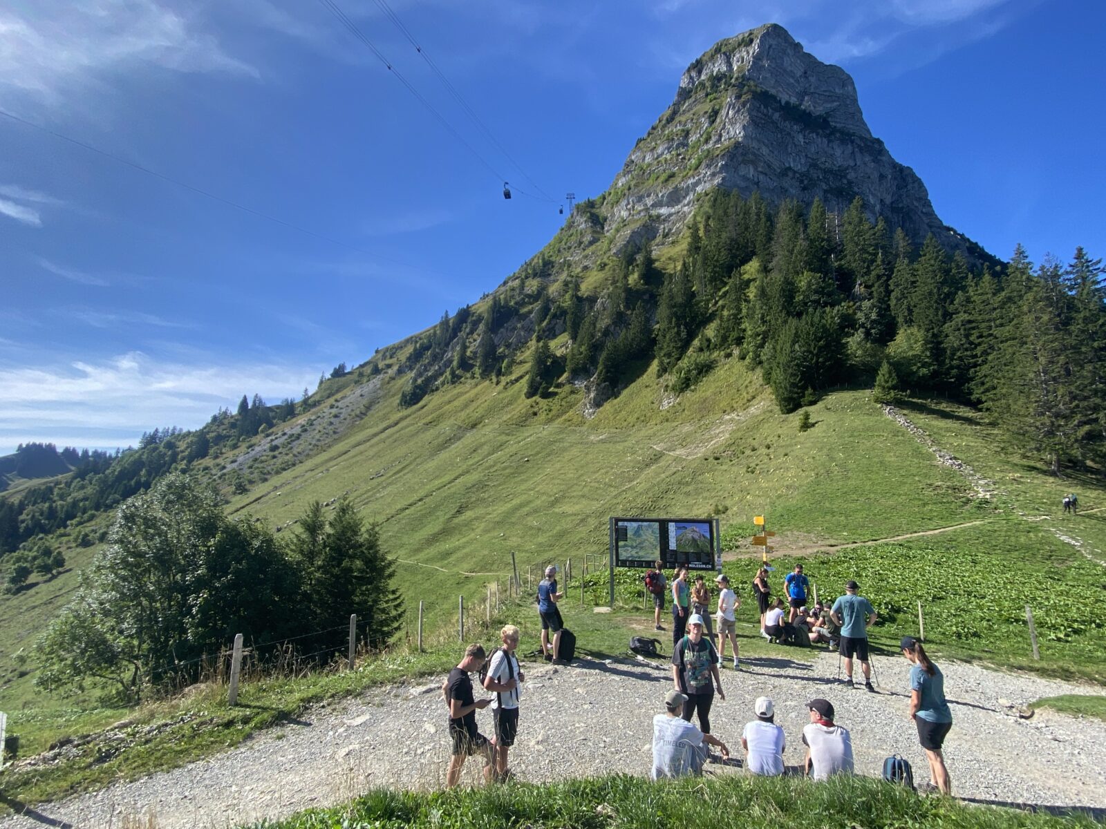 A la sortie du funiculaire, il y a flux continu de vétéistes, de randonneurs, de touristes, de familles et cela est drôle à voir.