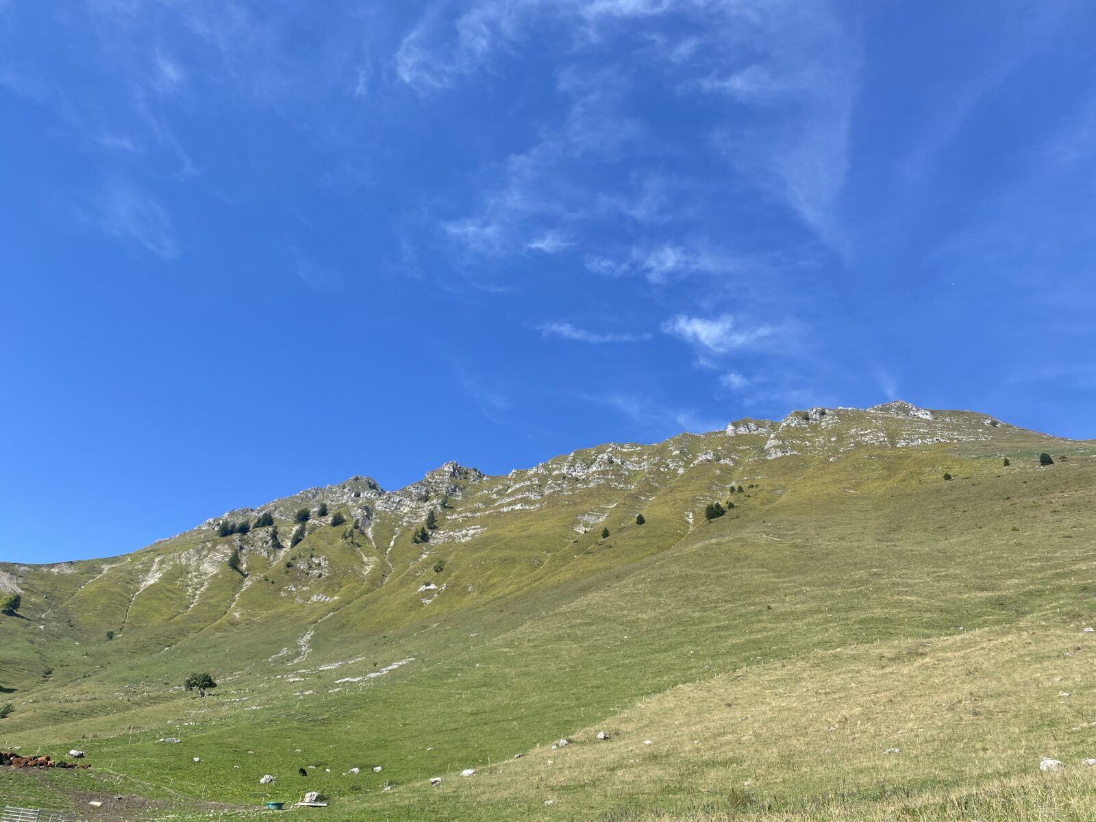 Alors bien sûr, je monte à nouveau, il y a peu de monde dans cette partie, je passe les Moilles, une autre buvette, ensuite Belle Chaux et me trouve maintenant au-dessus des Paccots et de la buvette du Vuipay. Les nombreuses voitures m’indiquent que là aussi ça doit afficher complet. Une traversée à flanc de coteau, dans les pâturages et la forêt et j’arrive au départ du chemin pour Teysachaux. J’avais fait le tour dans l’autre sens en 2021 et ajouté la grimpette à Teysachaux. Aucun risque que je récidive aujourd’hui (sourire). Depuis là, c’est facilement que je rejoins mon point de départ.